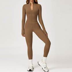 Bán buôn dài tay áo của phụ nữ Jumpsuit Hollow ra trở lại nửa dây kéo phụ nữ thể thao bodysuit cao căng phòng tập thể dục Yoga quần áo