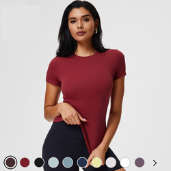 Phụ Nữ Của Trọng Lượng Nhẹ Tùy Chỉnh Gân Cổ Ngắn Tay Áo Yoga Top Thoáng Khí Tập Thể Dục Trang Phục Cho Phòng Tập Thể Dục Chạy Khiêu Vũ Đào Tạo Tập Luyện
